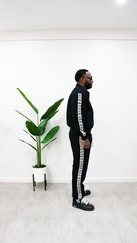 "MOTIVATION DIAMOND CLASSIC TRACKSET" (ALL BLACK W/ BLK/GRY/WHT TRIM) Unisex 100% FINEST STRETCH Cotton Fits true to size